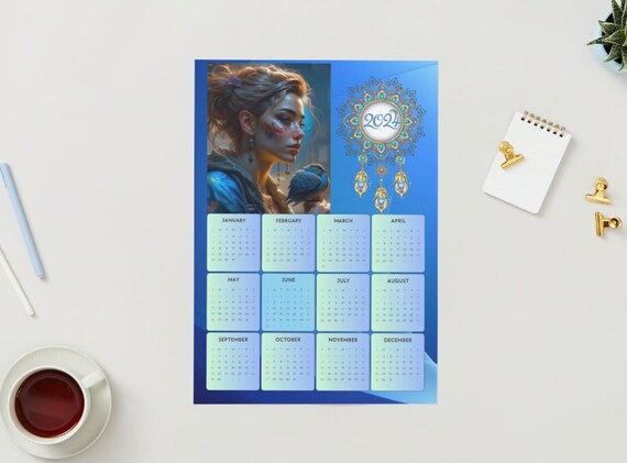 Source : dnkworkshop.comBeautiful 2024 Calendar. Girl With a Blue Bird. Desk Calendar