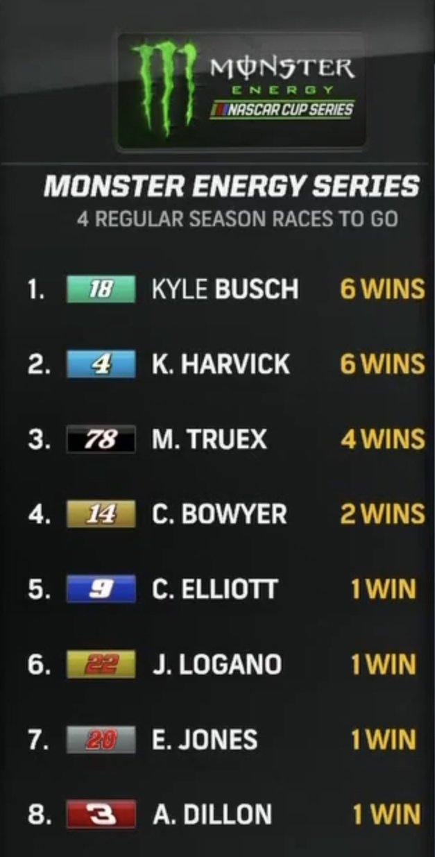 Source : racerxonline.com2019 Monster Energy NASCAR Cup Series Playoffs Jayski’s NASCAR