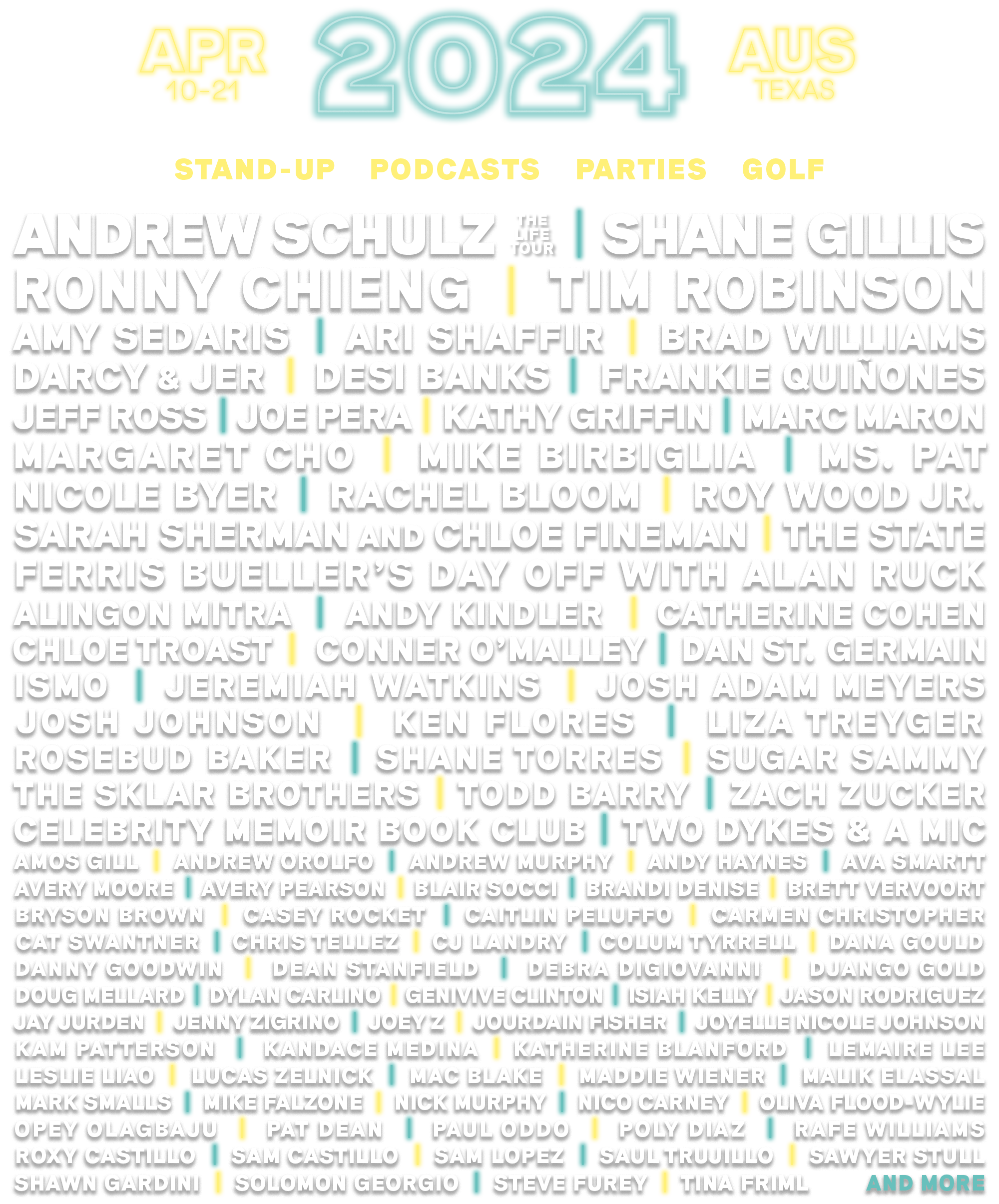 Moontower Comedy Festival 2024 Live – The lineup for the 2024 Moontower Just for Laughs Comedy Festival has been revealed Mondays Other notable acts include “Saturday Night Live” alumnus Tim Robinson, who will perform on April . Moontower Just For Laughs added more headliners to its lineup and we can’t wait for the festival to get here. Arena shows at Bass Concert Hall, the Moody Center and H-E-B Center in Cedar Park are .